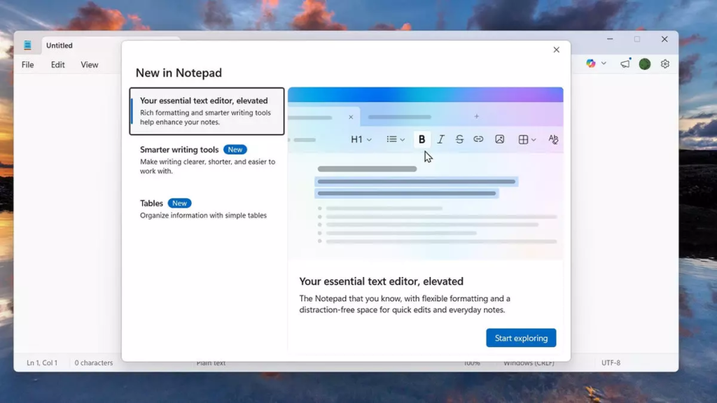 ABD merkezli teknoloji şirketi Microsoft’un 1985 yılında kullanıma sunduğu Not Defteri (Notepad), Windows’un en köklü ve en sade uygulamalarından biri olarak varlığını sürdürüyor. Aradan geçen yaklaşık 40 yıla ve birçok büyük güncellemeye rağmen temel yapısını koruyan uygulama, şimdi önemli bir yenilikle gündemde.