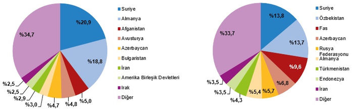 Yabancı damatlar arasında Suriyeliler yüzde 20,9 ile ilk sırada yer alırken, Alman ve Afgan uyruklular da öne çıktı. Yabancı gelinlerde ise Suriyeli, Özbek ve Faslı uyruklular ilk sıralarda bulundu.