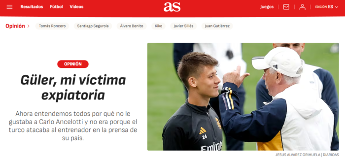 Real Madrid forması giyen milli futbolcu Arda Güler, son günlerde İspanyol basınında yapılan eleştirilerle gündeme geldi. Özellikle Diario AS gazetesinde yayımlanan bir köşe yazısı tartışma yarattı.