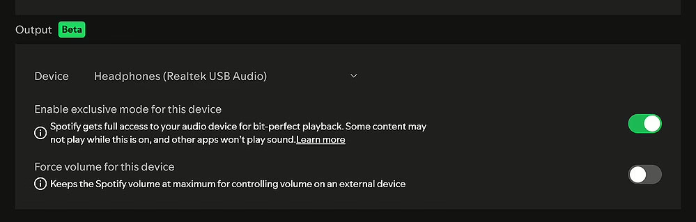 “Exclusive Mode” özelliği şu an için yalnızca Windows masaüstü uygulamasında ve Premium abonelere sunuluyor. Özelliği kullanmak için harici bir DAC, ses arayüzü veya kaliteli bir ses kartı öneriliyor.