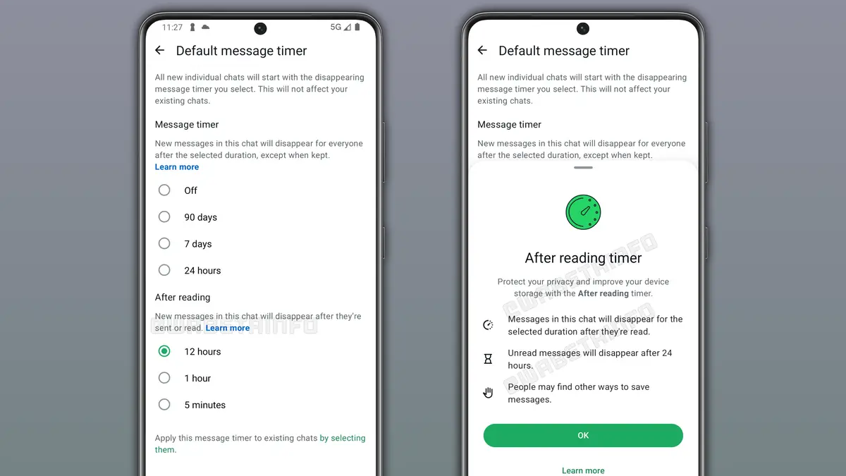 Okunma bazlı yeni zamanlayıcıda geri sayım, mesajın açıldığı anda devreye giriyor. Kullanıcılara 5 dakika, 1 saat ve 12 saat gibi farklı süre seçenekleri sunulması planlanıyor. Böylece hassas içeriklerin, görüntülendikten kısa süre sonra cihazdan kaldırılması mümkün olacak.